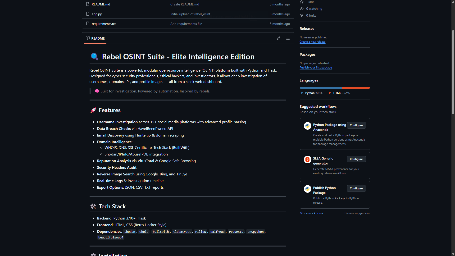 منصة استخبارات مفتوحة المصدر (OSINT). تتيح التحقيق العميق عن المستخدمين، النطاقات، والـ IPs من خلال لوحة تحكم ويب.