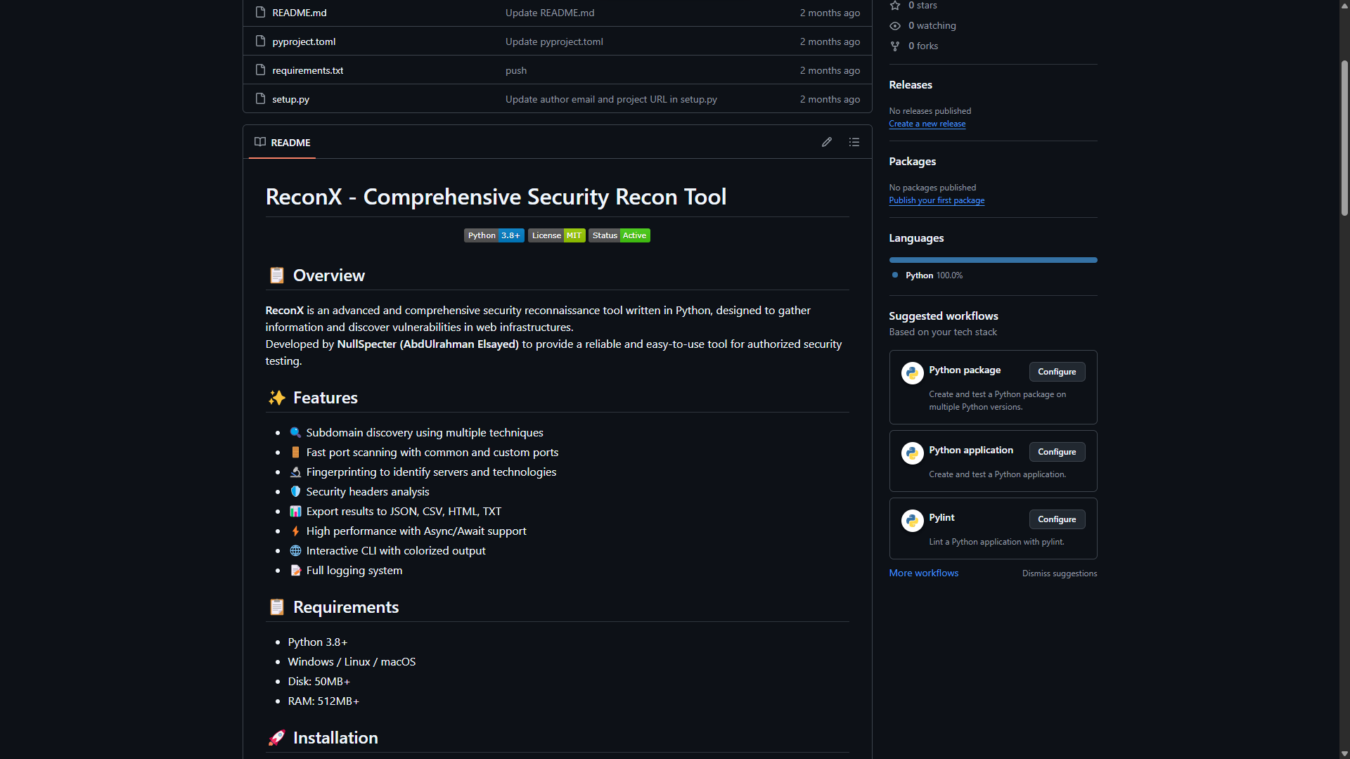 أداة استطلاع شاملة (All-in-one). تقوم باكتشاف الـ Subdomains، فحص المنافذ، وتحليل الـ Headers بسرعة فائقة.