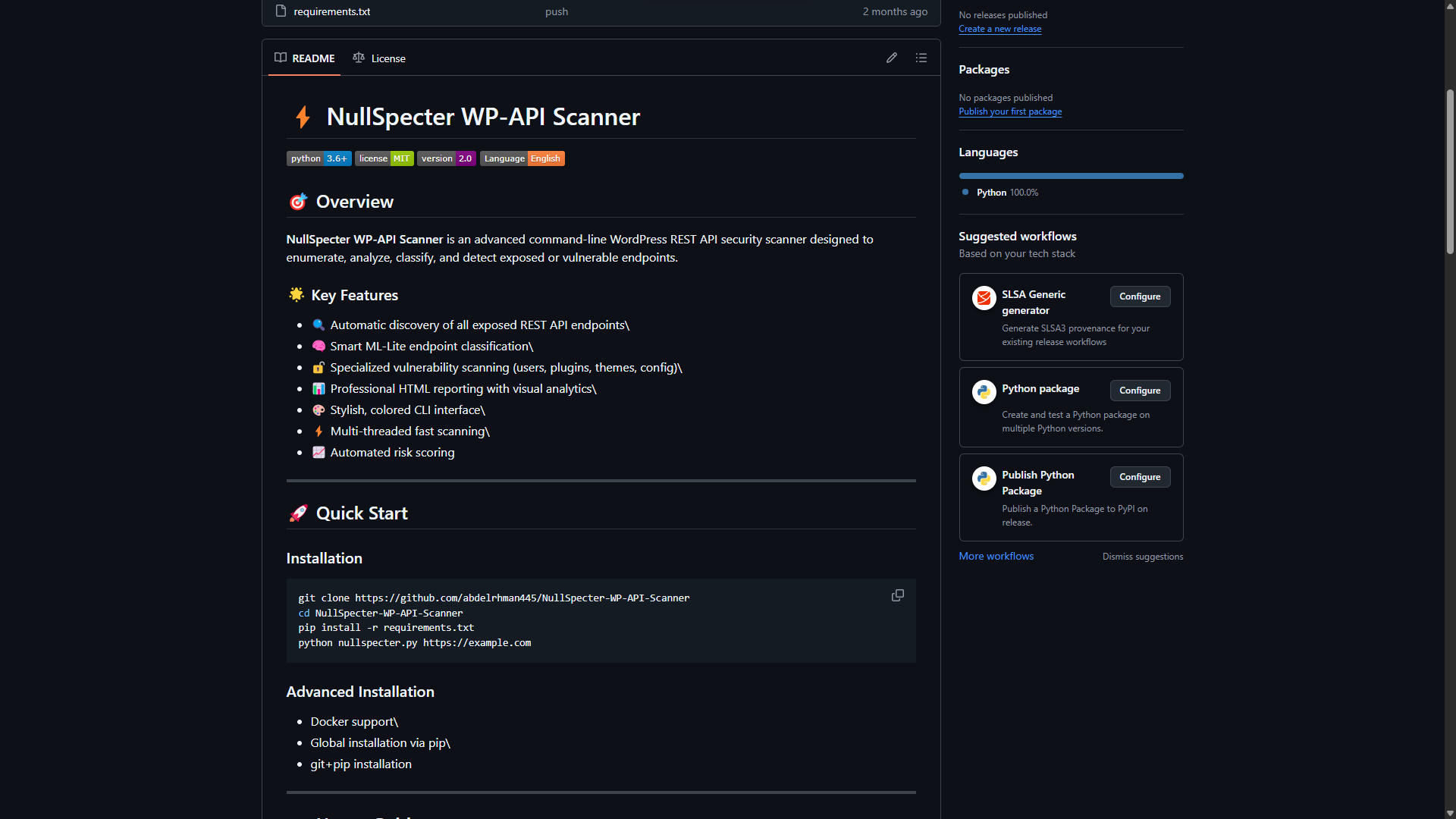 أداة فحص متقدمة لـ WordPress REST API. تستخدم ML-Lite لتصنيف نقاط النهاية واكتشاف الثغرات وتوليد تقارير HTML.